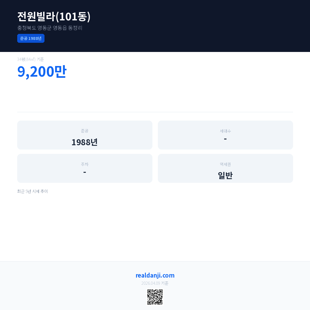 전원빌라(101동) 최근 거래가는 9,200만입니다. (2025-12)