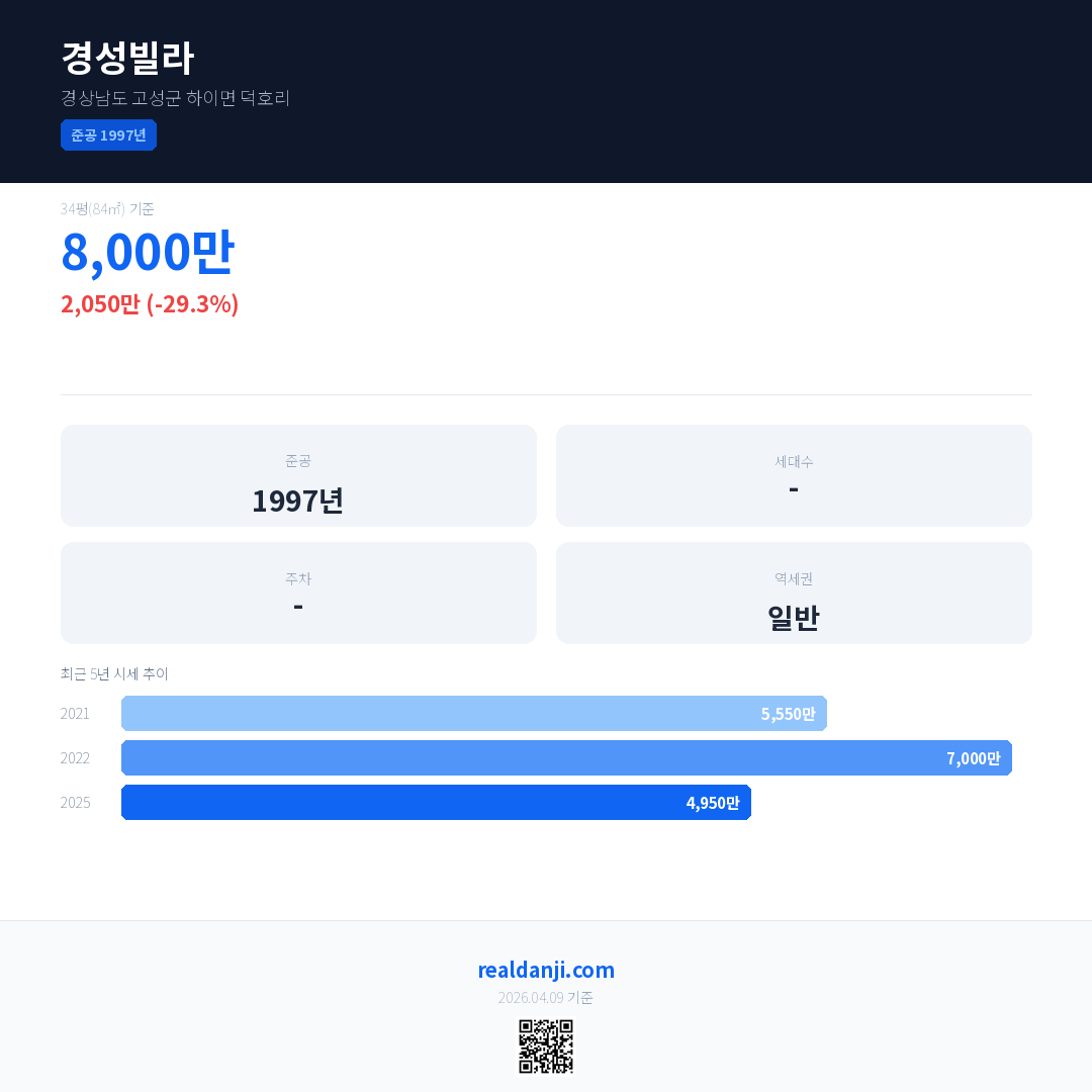 경성빌라 최근 거래가는 8,000만입니다. (2025-05)