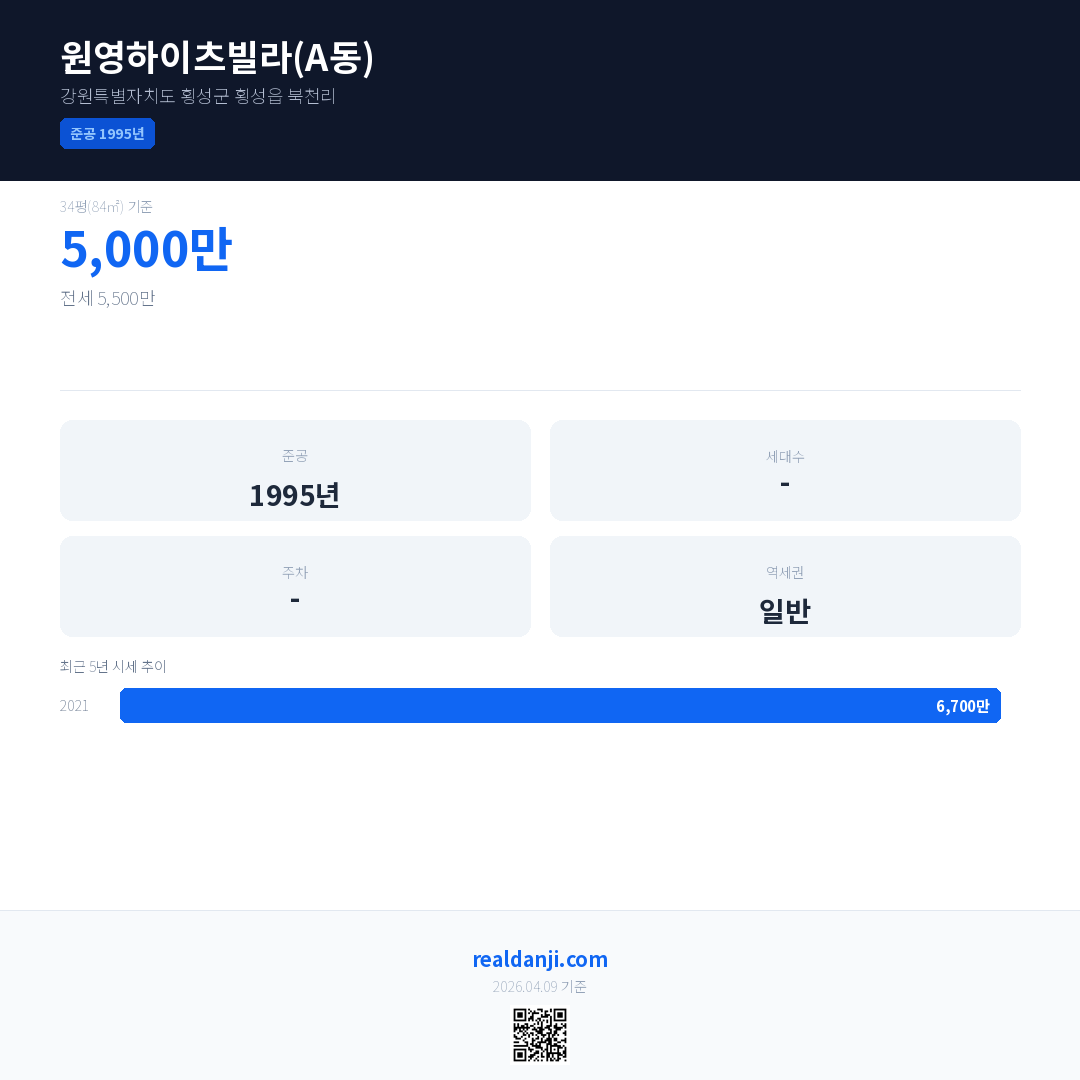 원영하이츠빌라(A동)은(는) 1995년에 준공되었으며, 현재 31년차입니다.