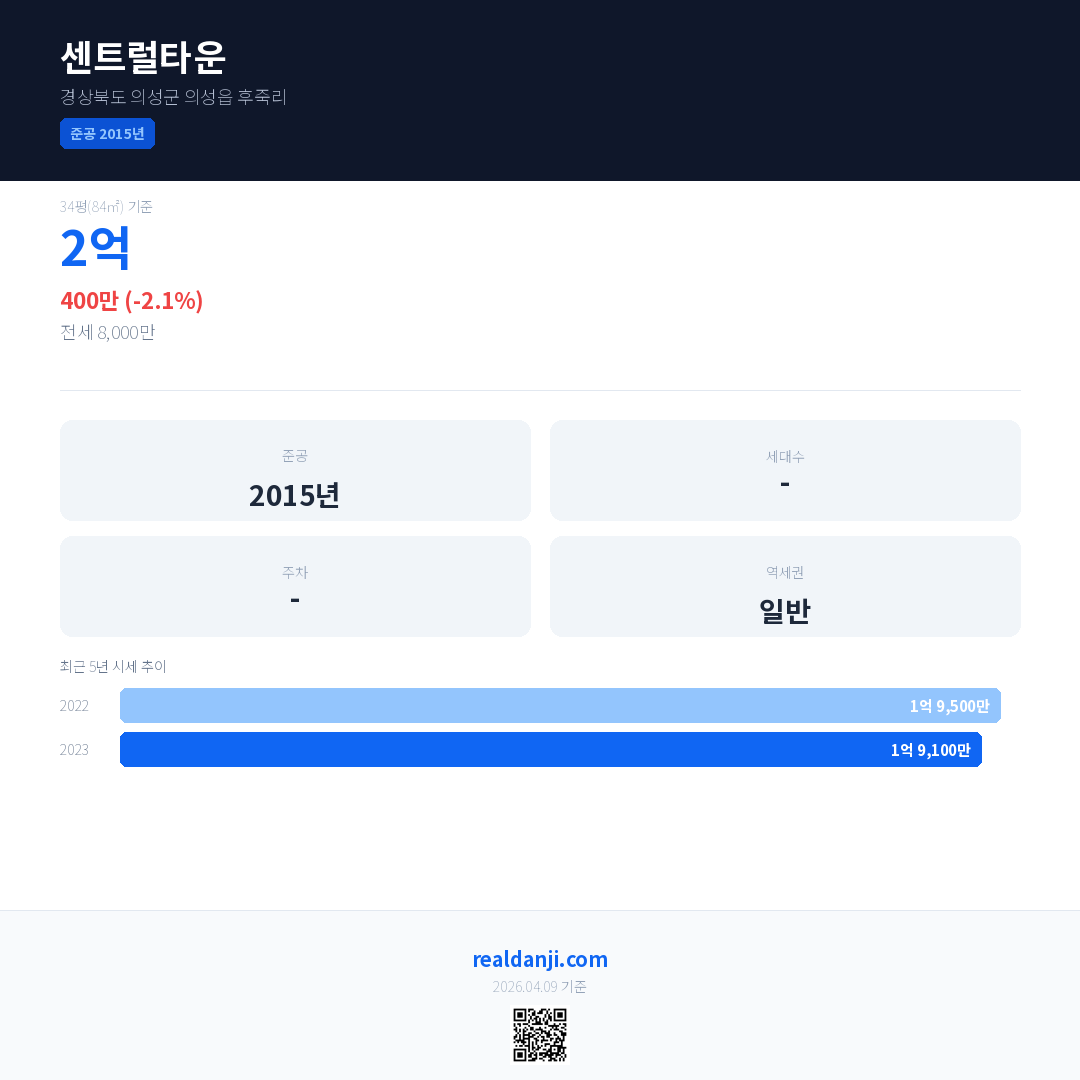센트럴타운 최근 거래가는 2억입니다. (2023-09)