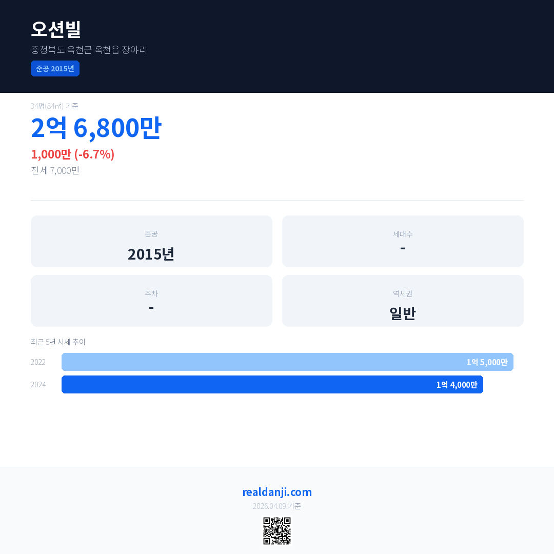 오션빌 최근 거래가는 2억 6,800만입니다. (2026-01)