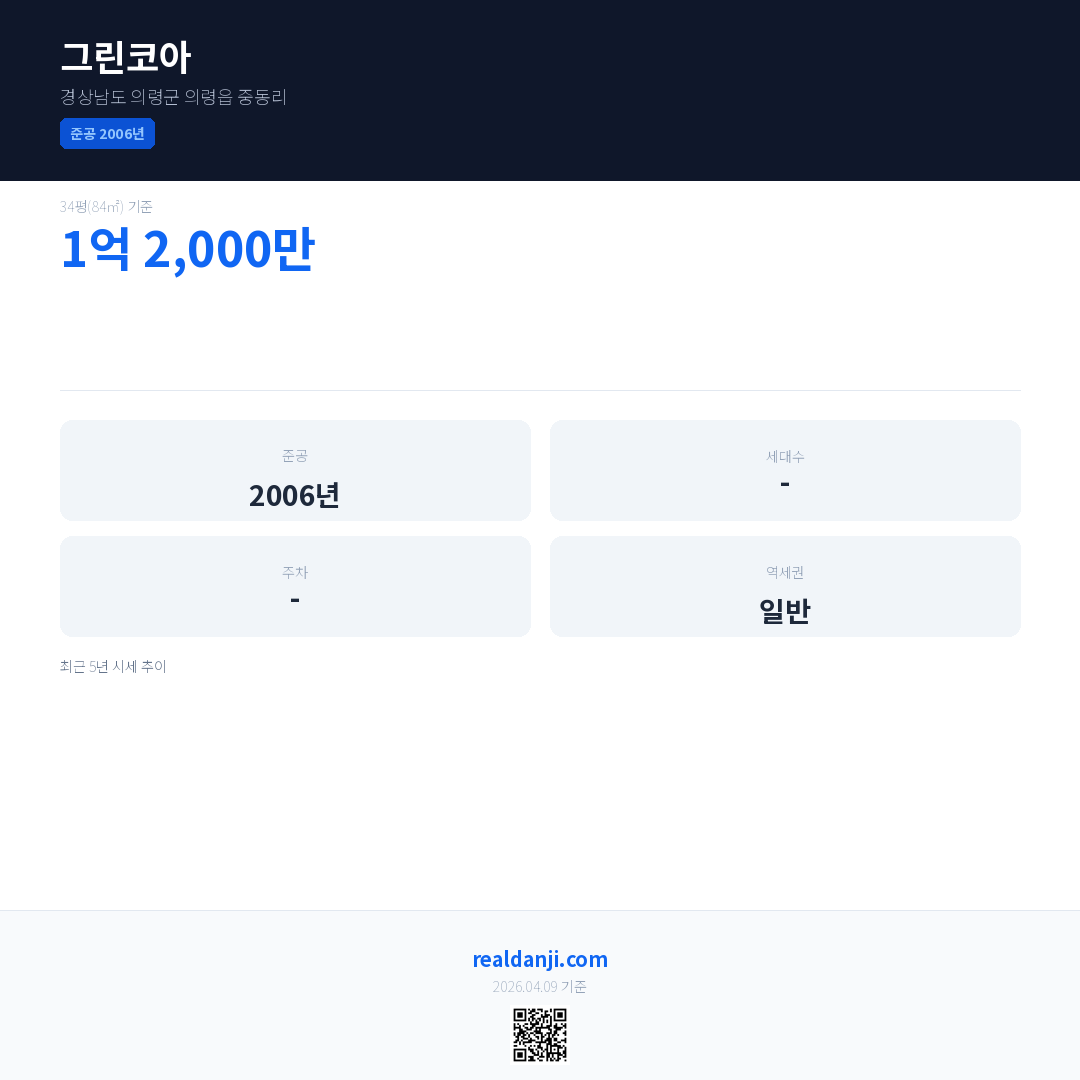 그린코아 최근 거래가는 1억 2,000만입니다. (2025-03)