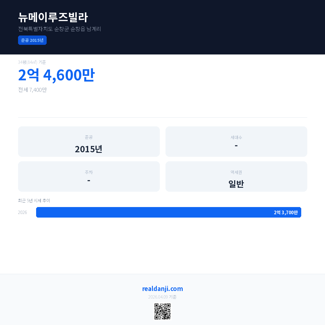 뉴메이루즈빌라 최근 거래가는 2억 4,600만입니다. (2026-02)