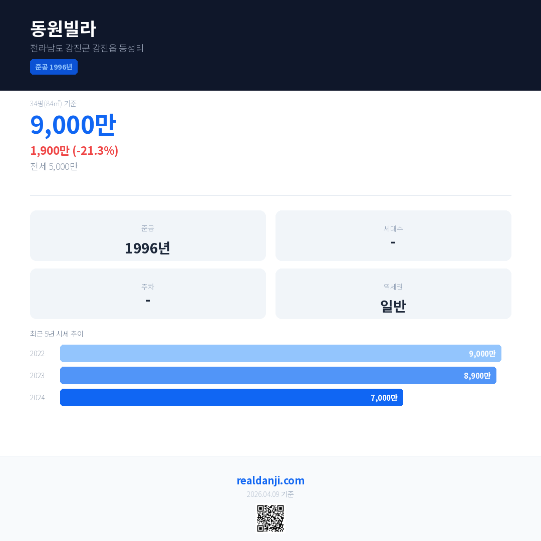 동원빌라 최근 거래가는 9,000만입니다. (2024-12)