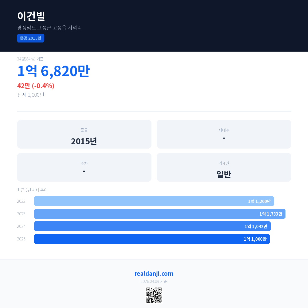 이건빌 최근 거래가는 1억 6,820만입니다. (2025-01)