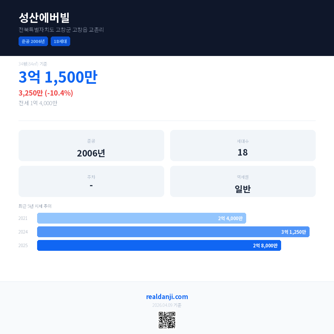 성산에버빌 국민평형 기준 2025년 평균 거래가는 2억 8,000만으로, 전년 대비 10.4% 하락 했습니다.