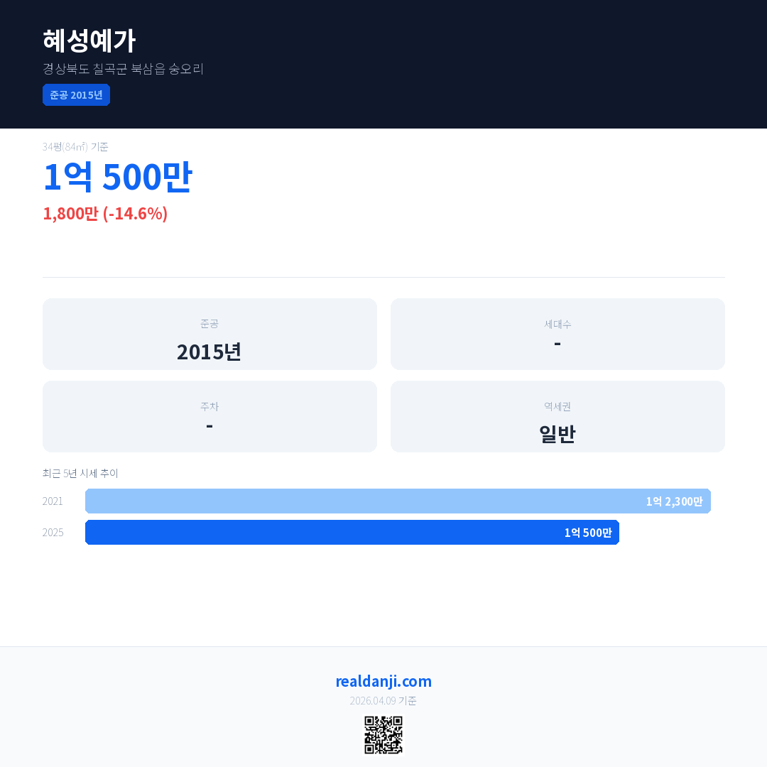 혜성예가 국민평형 기준 2025년 평균 거래가는 1억 500만으로, 전년 대비 14.6% 하락 했습니다.