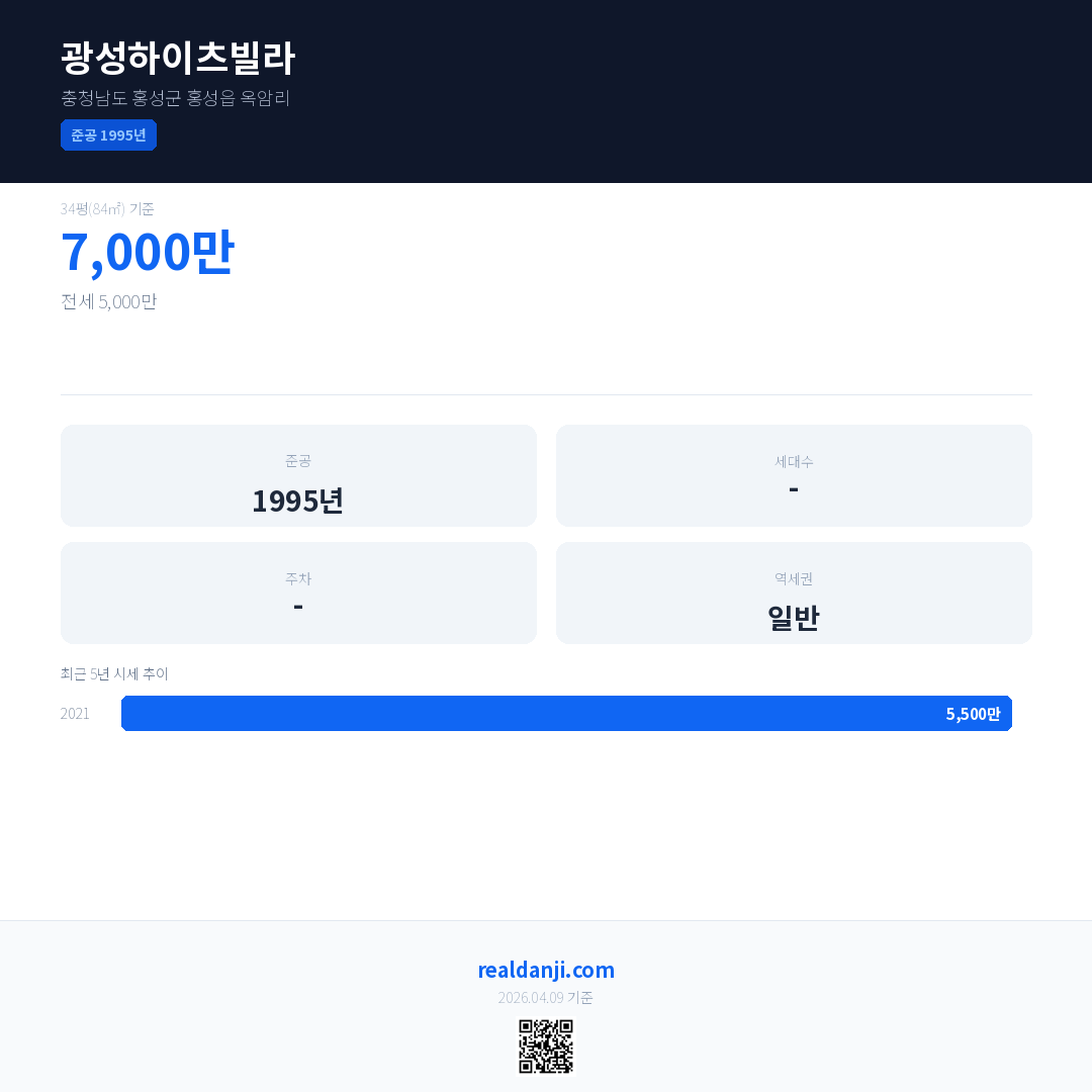 광성하이츠빌라 최근 거래가는 7,000만입니다. (2021-07)