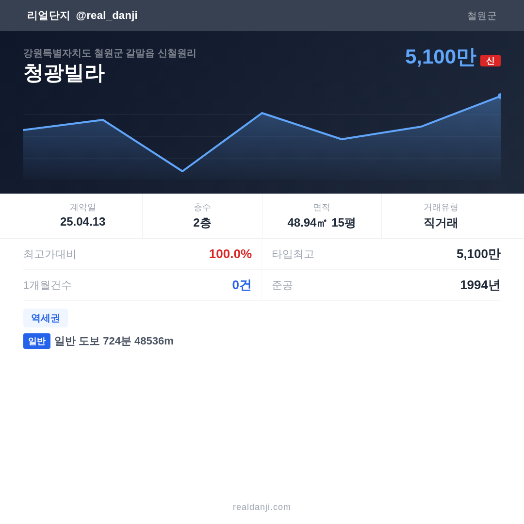 청광빌라 최근 거래가는 5,100만입니다. (2025-04)