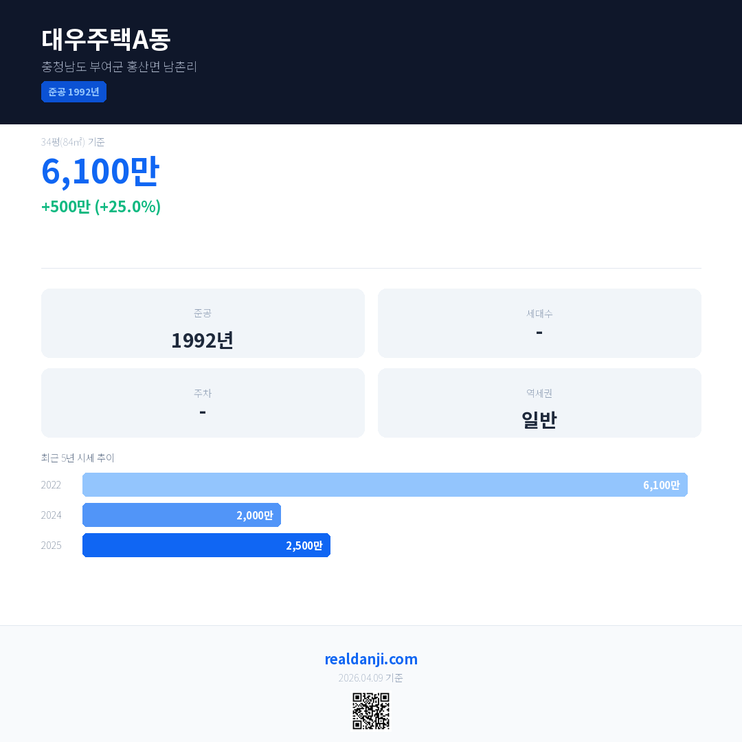 대우주택A동 최근 거래가는 6,100만입니다. (2025-06)