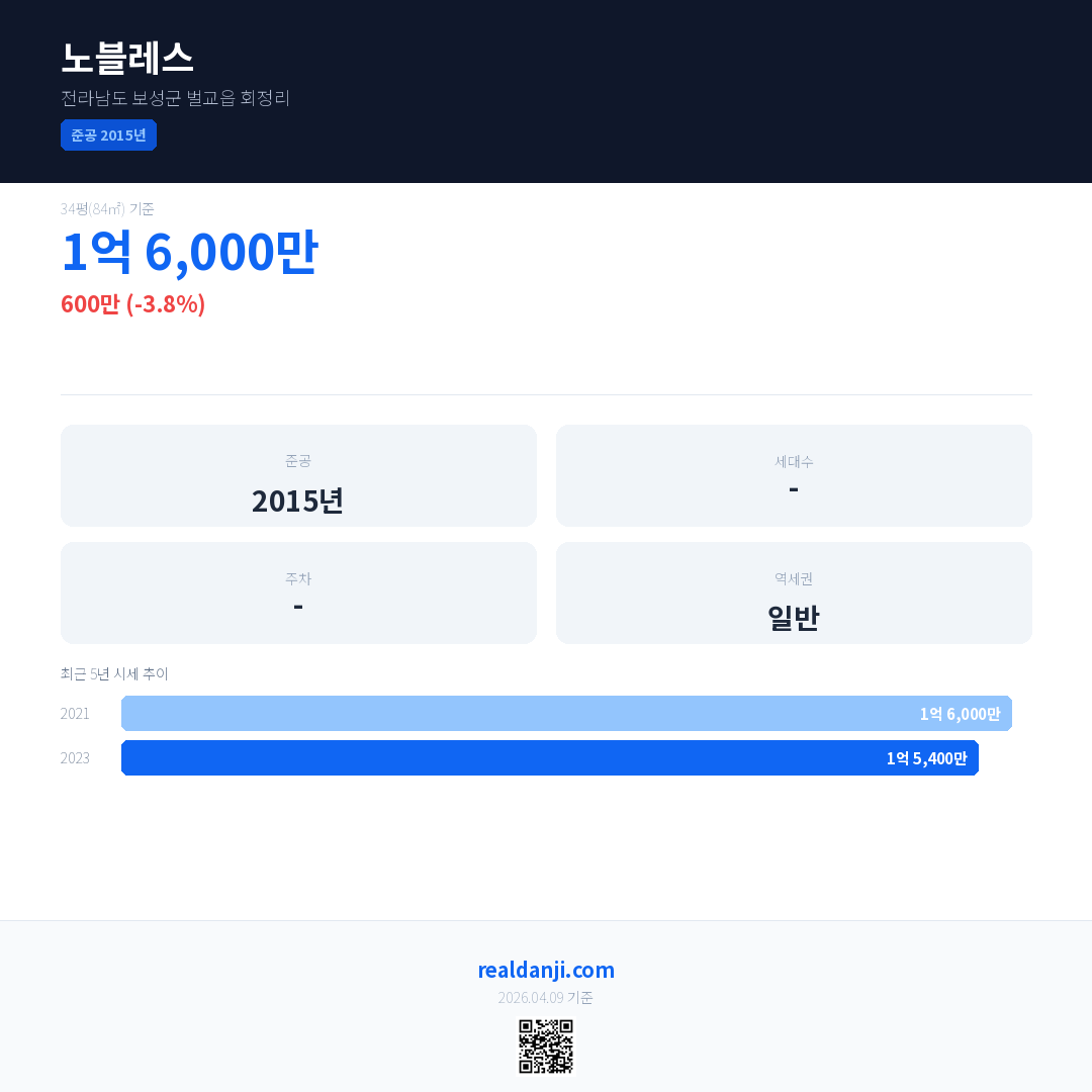 노블레스 국민평형 기준 2023년 평균 거래가는 1억 5,400만으로, 전년 대비 3.8% 하락 했습니다.