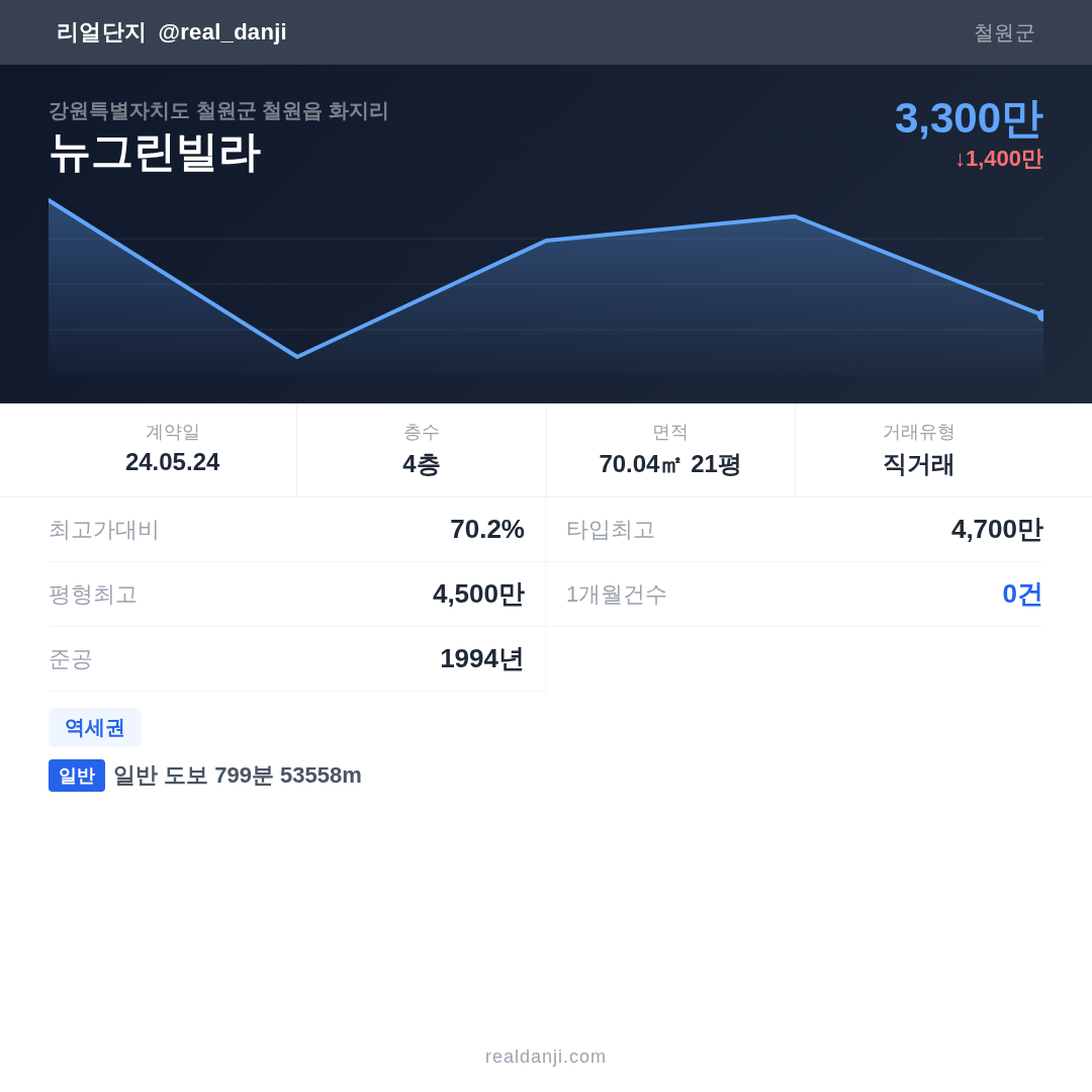 | 2024.05.24 | 70㎡ | 4층 | 3,300만 |