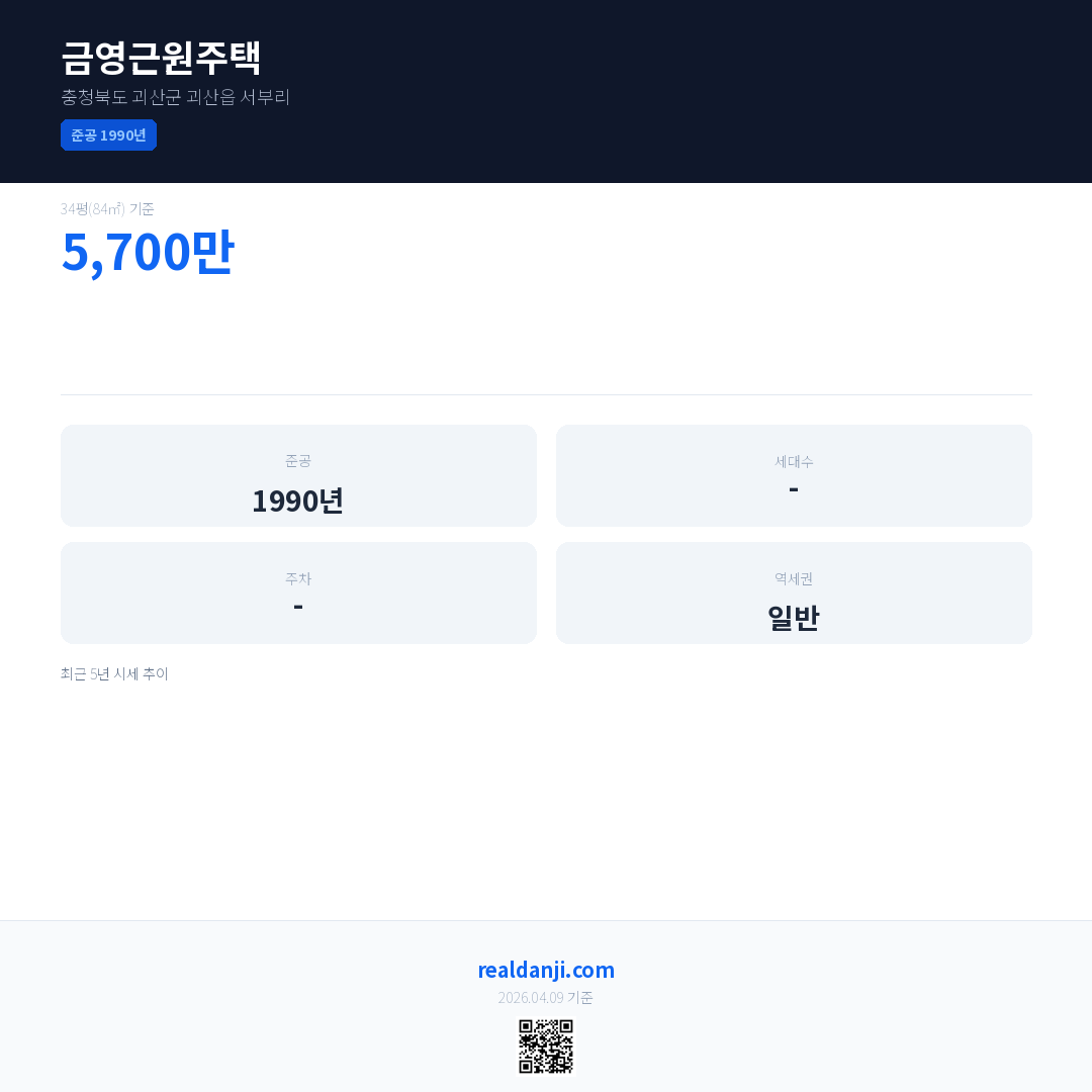 금영근원주택 최근 거래가는 5,700만입니다. (2023-08)