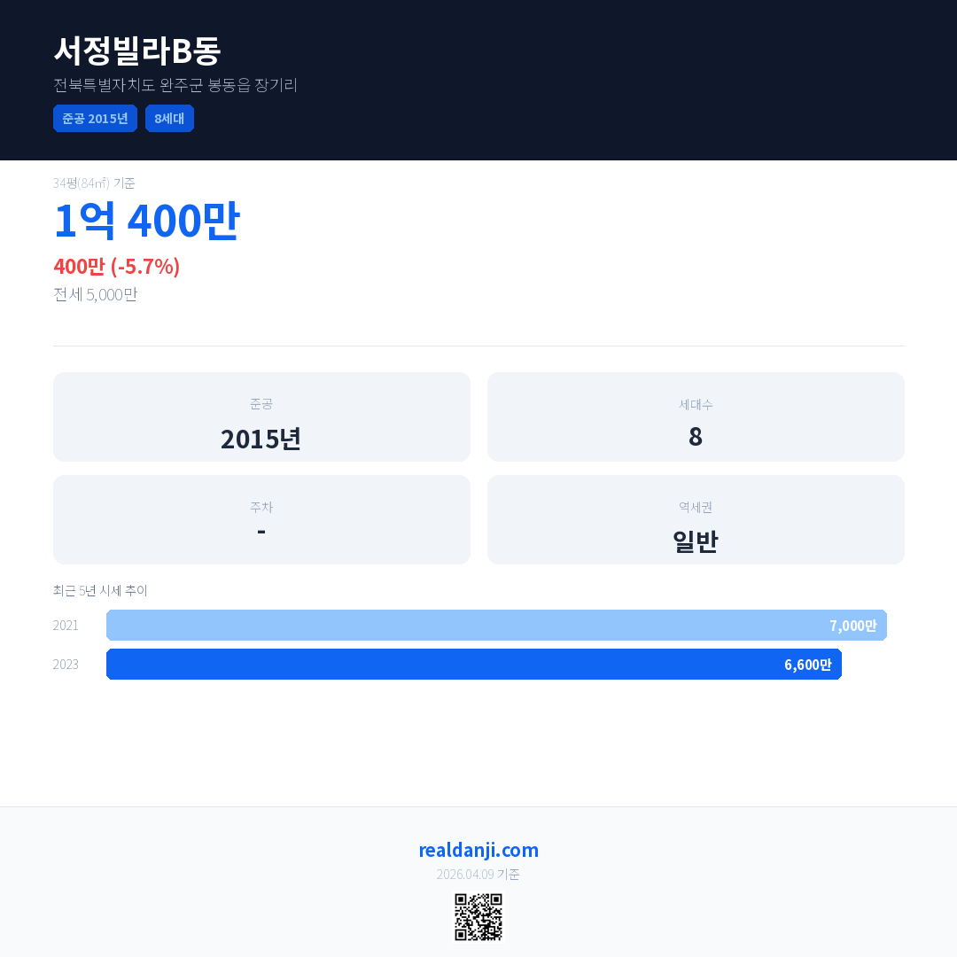 서정빌라B동 최근 거래가는 1억 400만입니다. (2023-11)