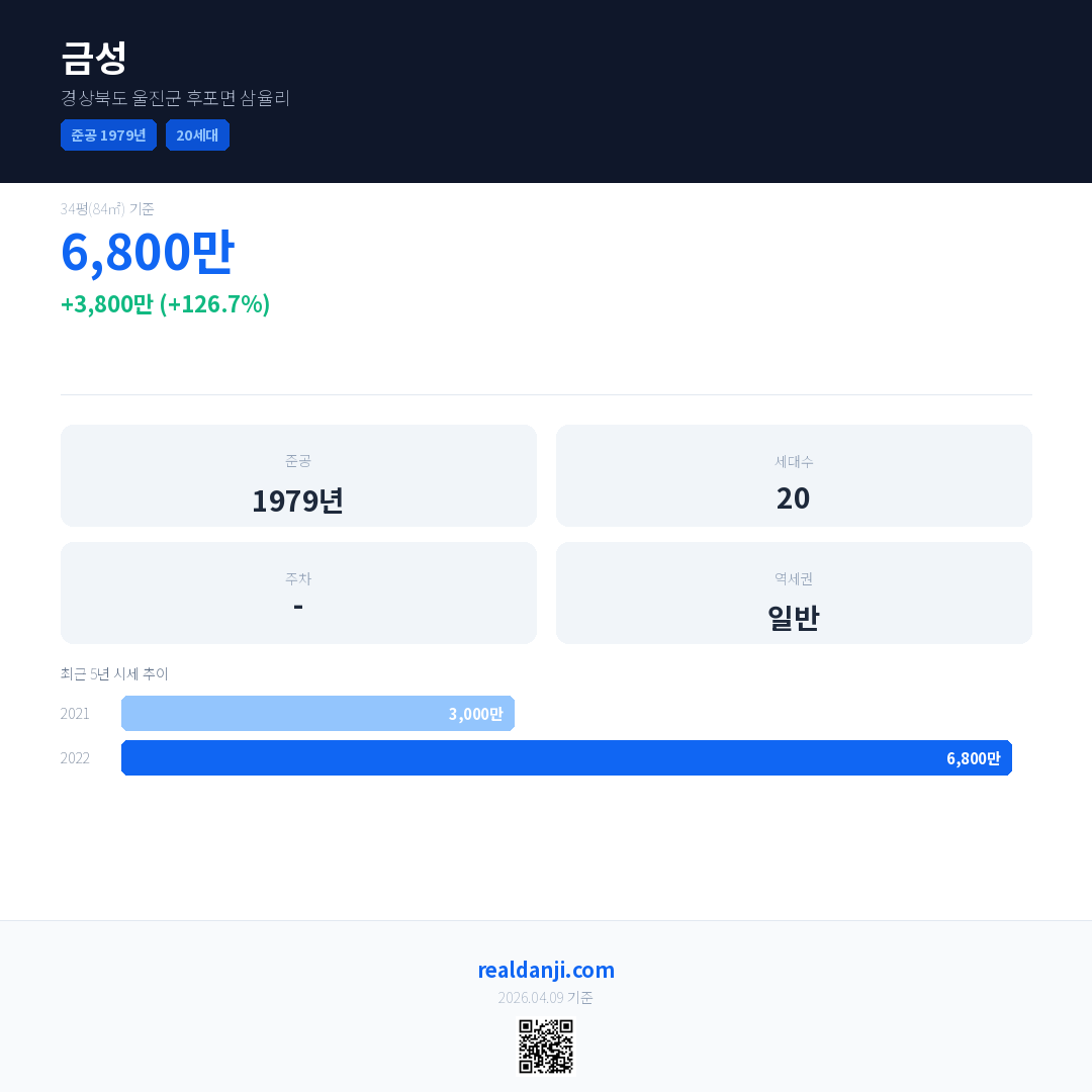 금성 국민평형 기준 2022년 평균 거래가는 6,800만으로, 전년 대비 126.7% 상승 했습니다.