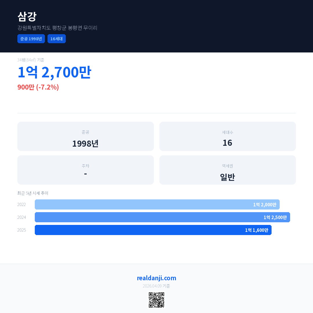 삼강 최근 거래가는 1억 2,700만입니다. (2025-11)