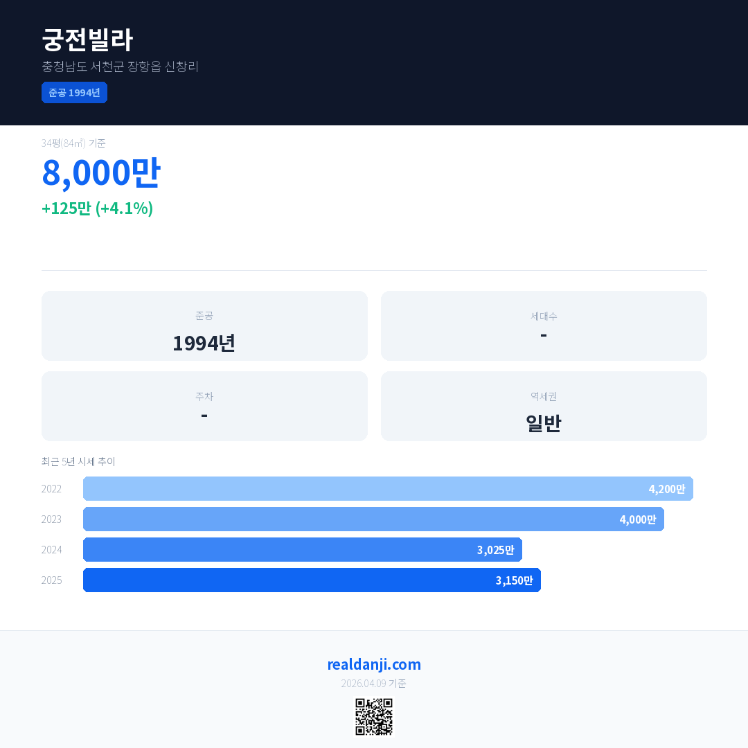 궁전빌라 최근 거래가는 8,000만입니다. (2025-03)