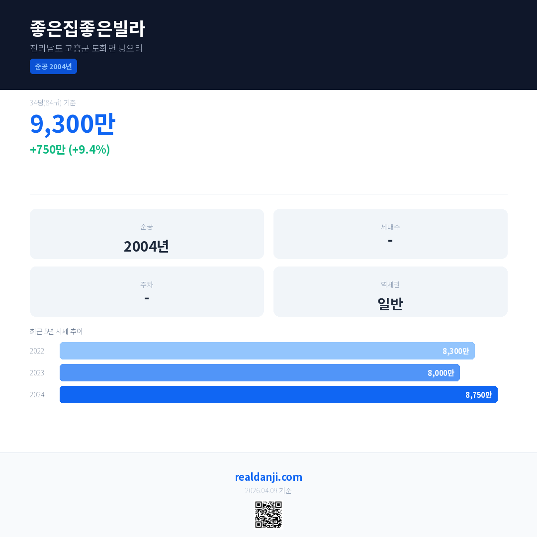 좋은집좋은빌라 최근 거래가는 9,300만입니다. (2024-12)