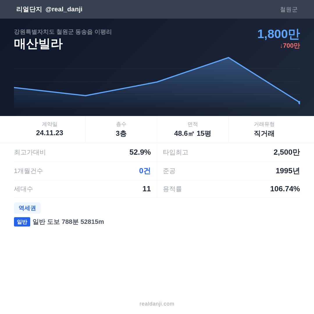 | 2024.11.23 | 49㎡ | 3층 | 1,800만 |