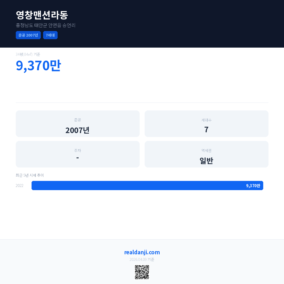 영창맨션라동 최근 거래가는 9,370만입니다. (2022-03)