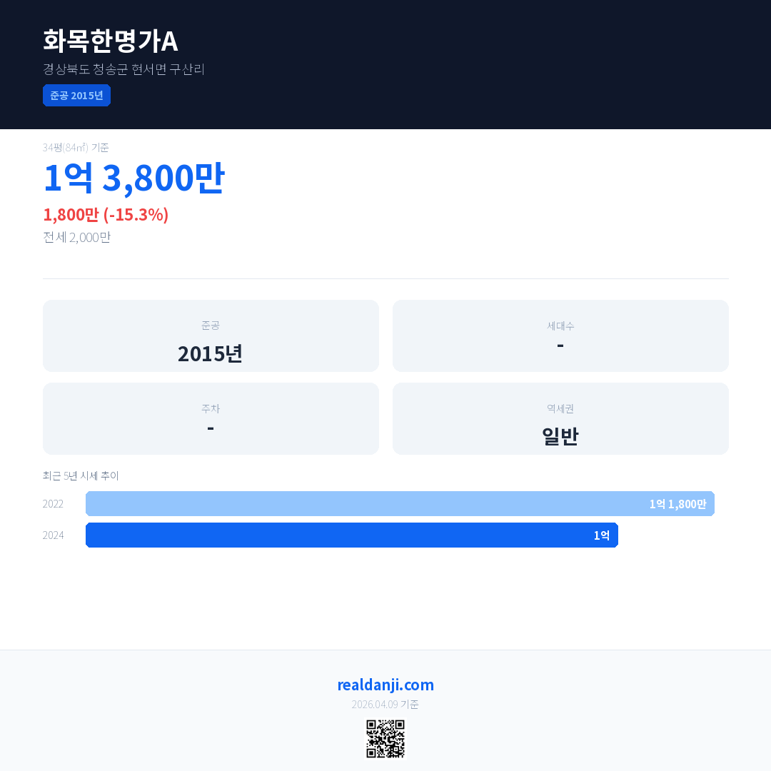 화목한명가A 최근 거래가는 1억 3,800만입니다. (2024-09)