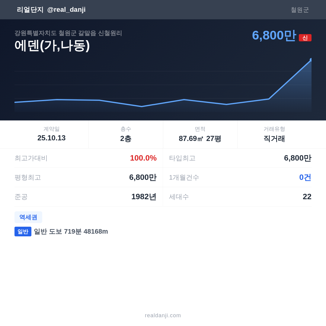 에덴(가,나동) 최근 거래가는 6,800만입니다. (2025-10)