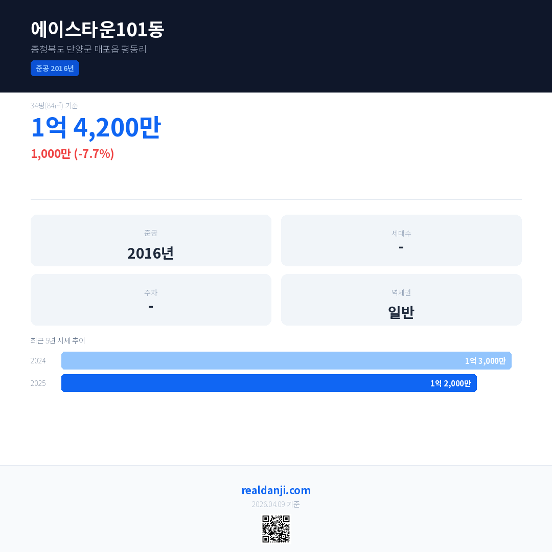 에이스타운101동 국민평형 기준 2025년 평균 거래가는 1억 2,000만으로, 전년 대비 7.7% 하락 했습니다.