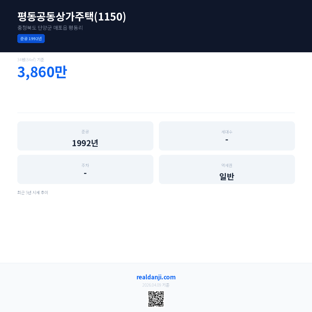 평동공동상가주택(1150) 최근 거래가는 3,860만입니다. (2022-08)