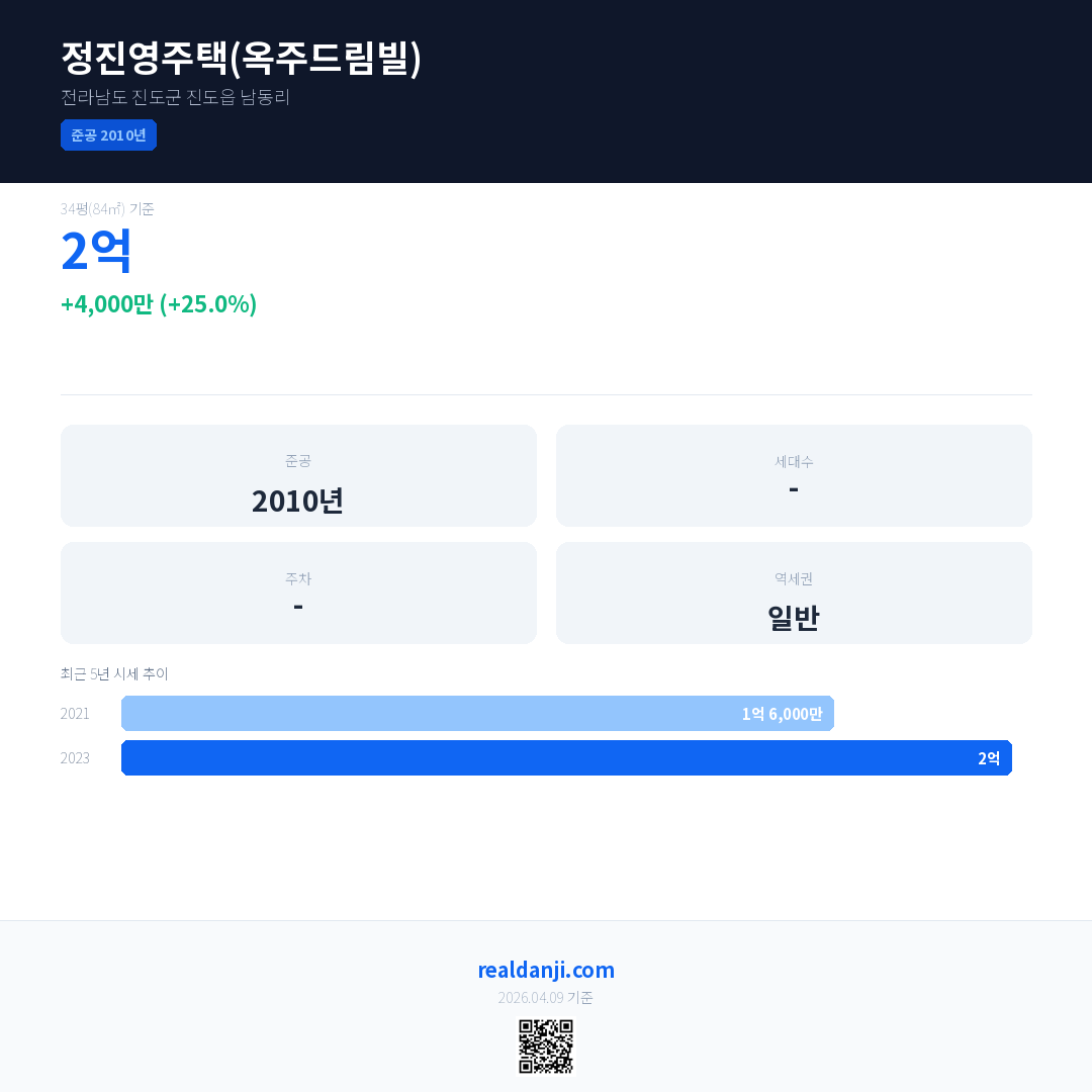 정진영주택(옥주드림빌) 최근 거래가는 2억입니다. (2023-08)