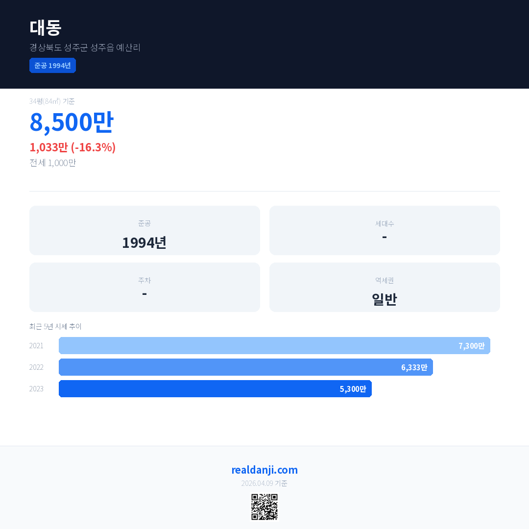 대동 최근 거래가는 8,500만입니다. (2023-08)