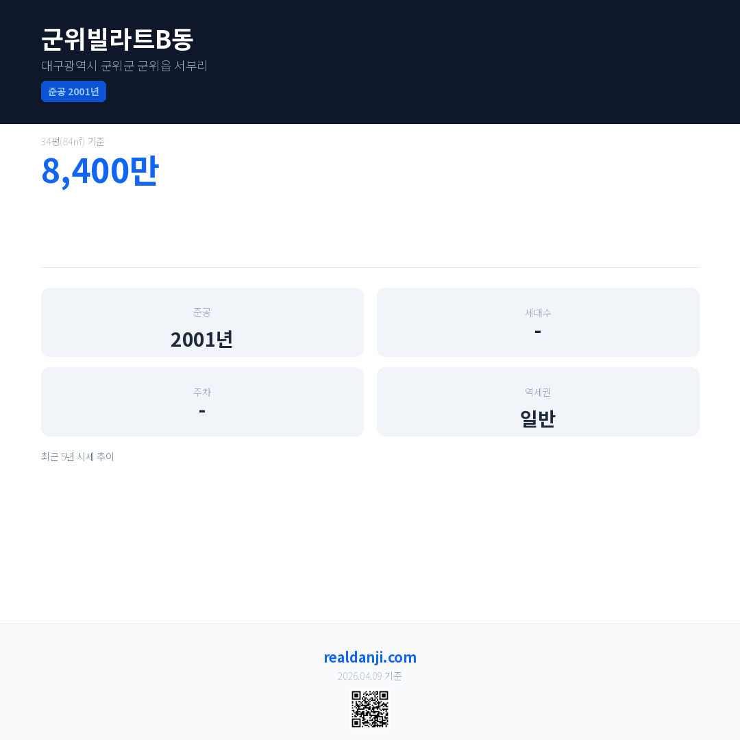 군위빌라트B동 최근 거래가는 8,400만입니다. (2022-01)