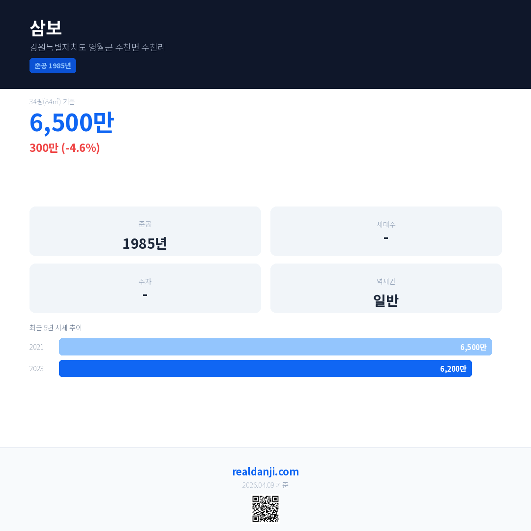 삼보 국민평형 기준 2023년 평균 거래가는 6,200만으로, 전년 대비 4.6% 하락 했습니다.
