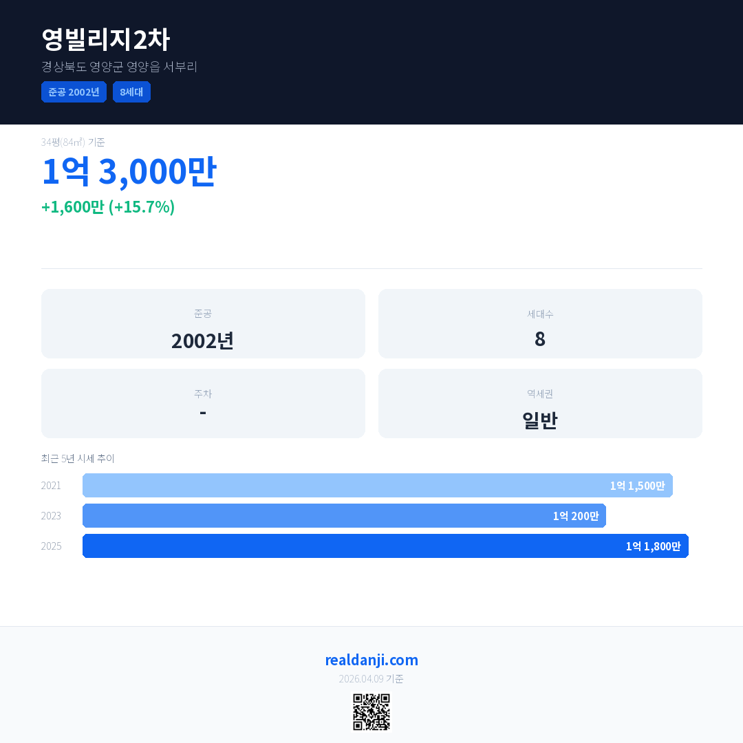 영빌리지2차 최근 거래가는 1억 3,000만입니다. (2025-04)