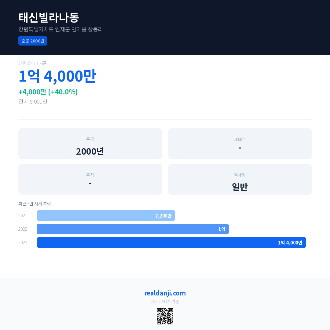태신빌라나동은(는) 2000년에 준공되었으며, 현재 26년차입니다.