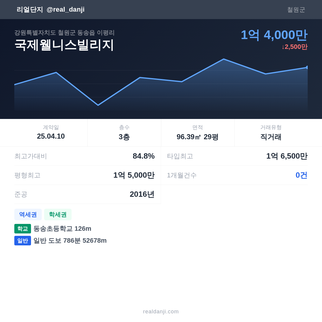 국제웰니스빌리지 최근 거래가는 1억 6,500만입니다. (2025-04)