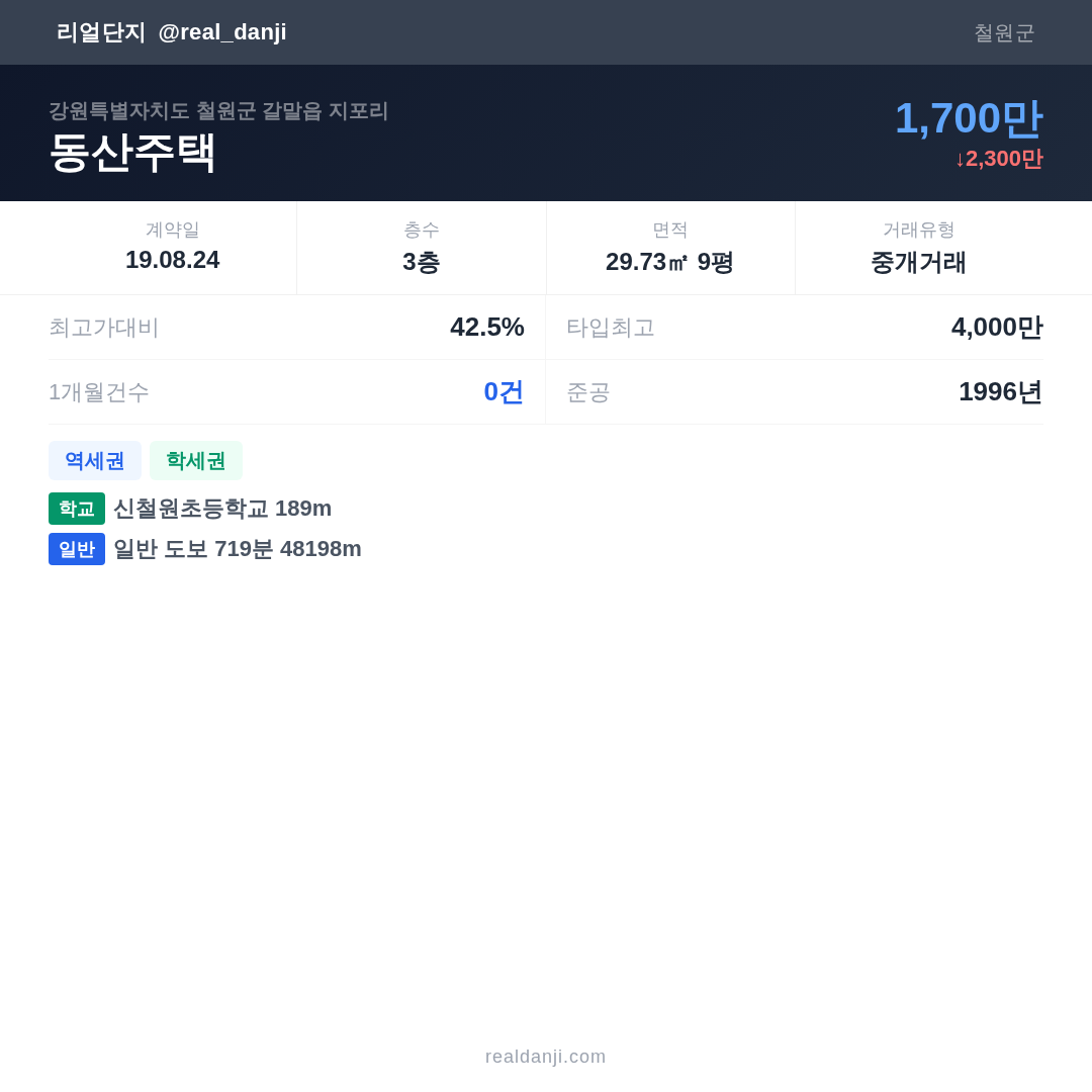 동산주택 최근 거래가는 4,000만입니다. (2019-08)