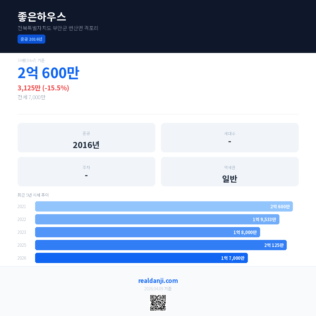 좋은하우스 최근 거래가는 1억 7,000만입니다. (2026-03)