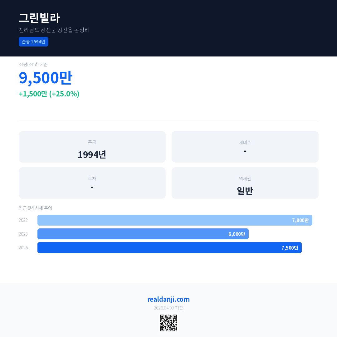 그린빌라 최근 거래가는 7,500만입니다. (2026-03)