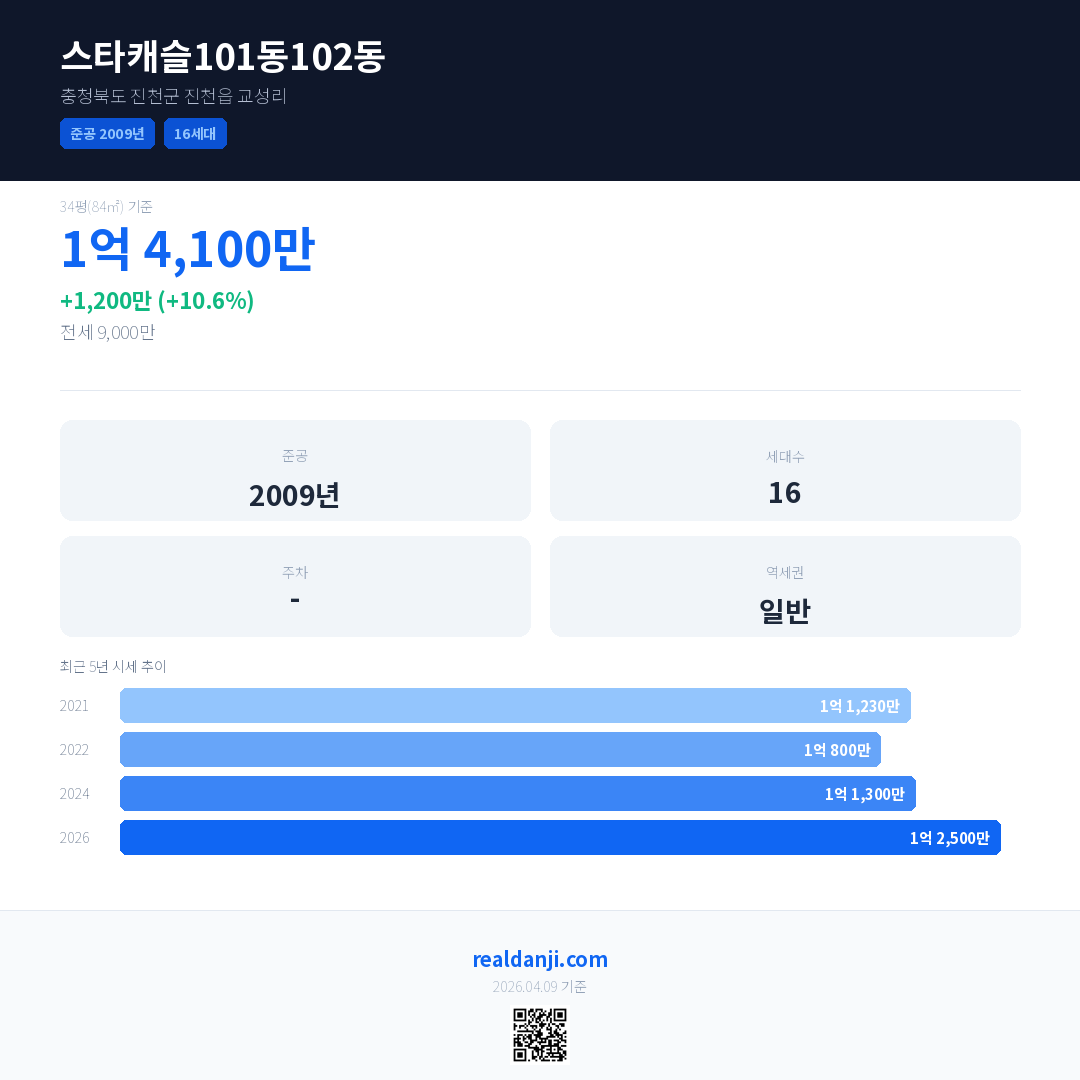 스타캐슬101동102동 최근 거래가는 1억 4,100만입니다. (2026-01)