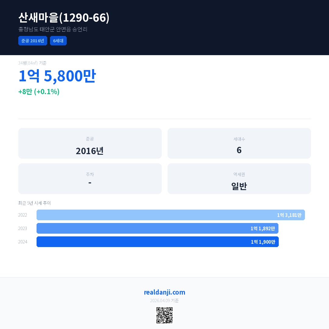 산새마을(1290-66) 최근 거래가는 1억 5,800만입니다. (2024-03)