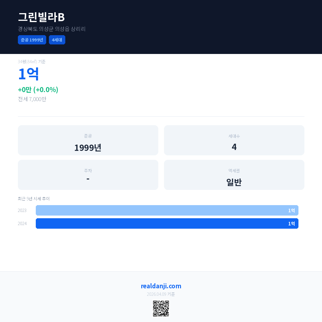그린빌라B 최근 거래가는 1억입니다. (2024-04)