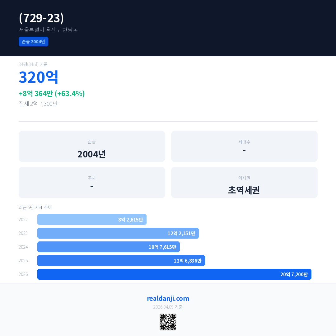 (729-23)은(는) 2004년에 준공되었으며, 현재 22년차입니다.