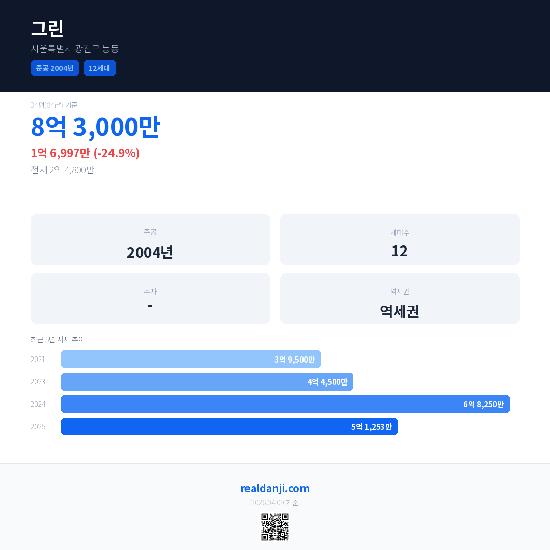 그린 최근 거래가는 8억 3,000만입니다. (2026-03)