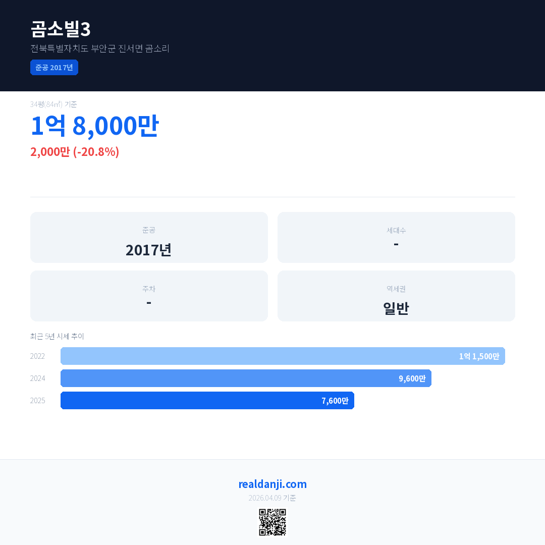곰소빌3 최근 거래가는 7,600만입니다. (2025-08)