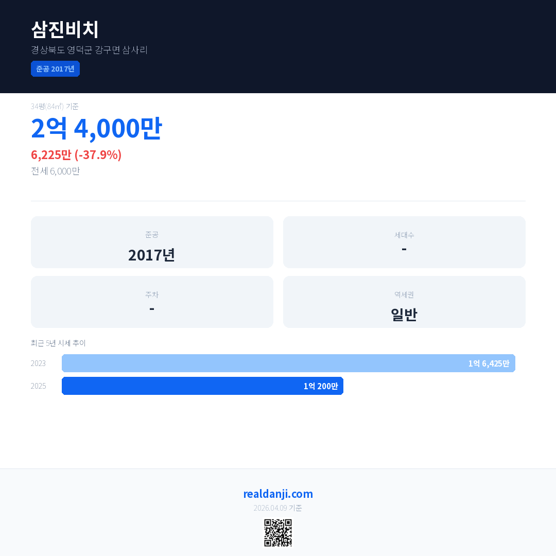 삼진비치 최근 거래가는 2억 4,000만입니다. (2025-09)