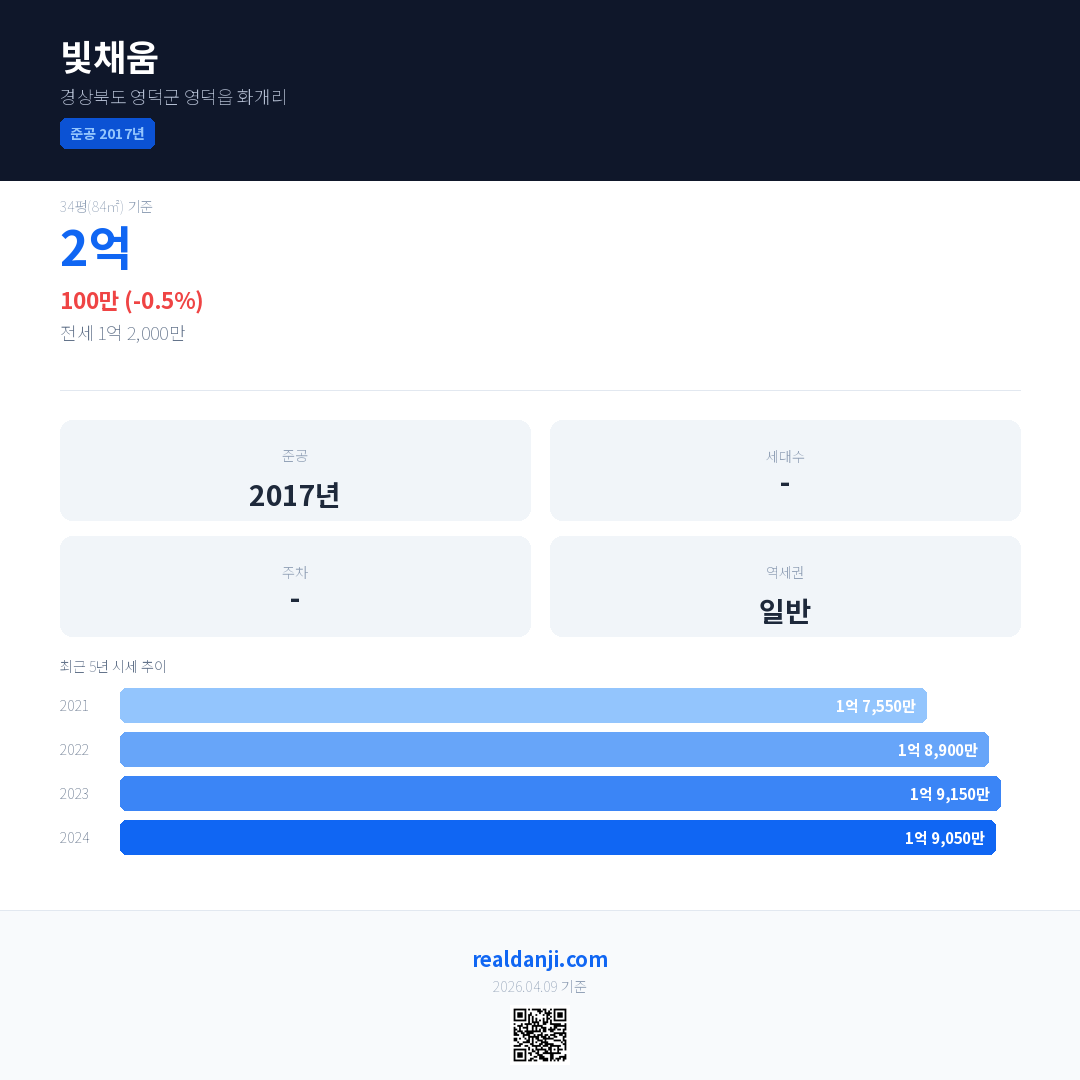 빛채움 최근 거래가는 2억입니다. (2024-02)