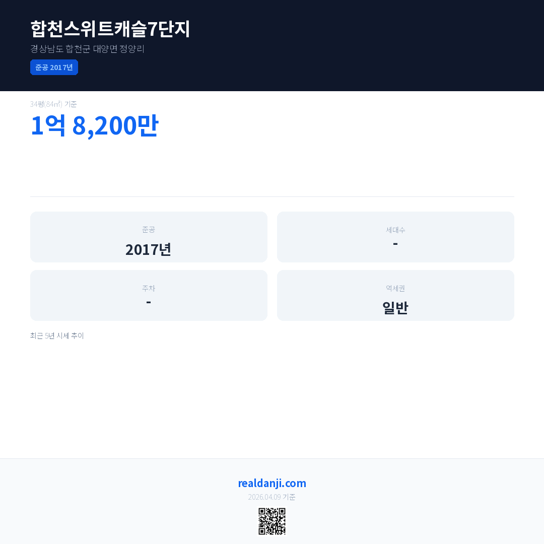 합천스위트캐슬7단지 최근 거래가는 1억 8,200만입니다. (2025-10)