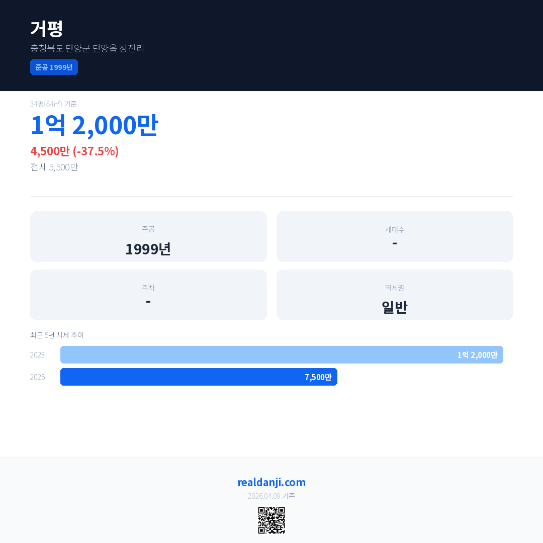거평 국민평형 기준 2025년 평균 거래가는 7,500만으로, 전년 대비 37.5% 하락 했습니다.