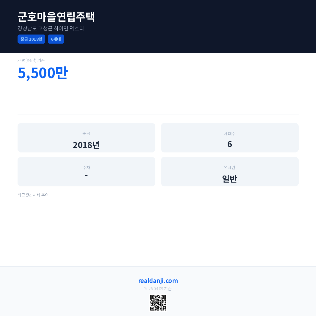 군호마을연립주택 최근 거래가는 5,500만입니다. (2025-11)