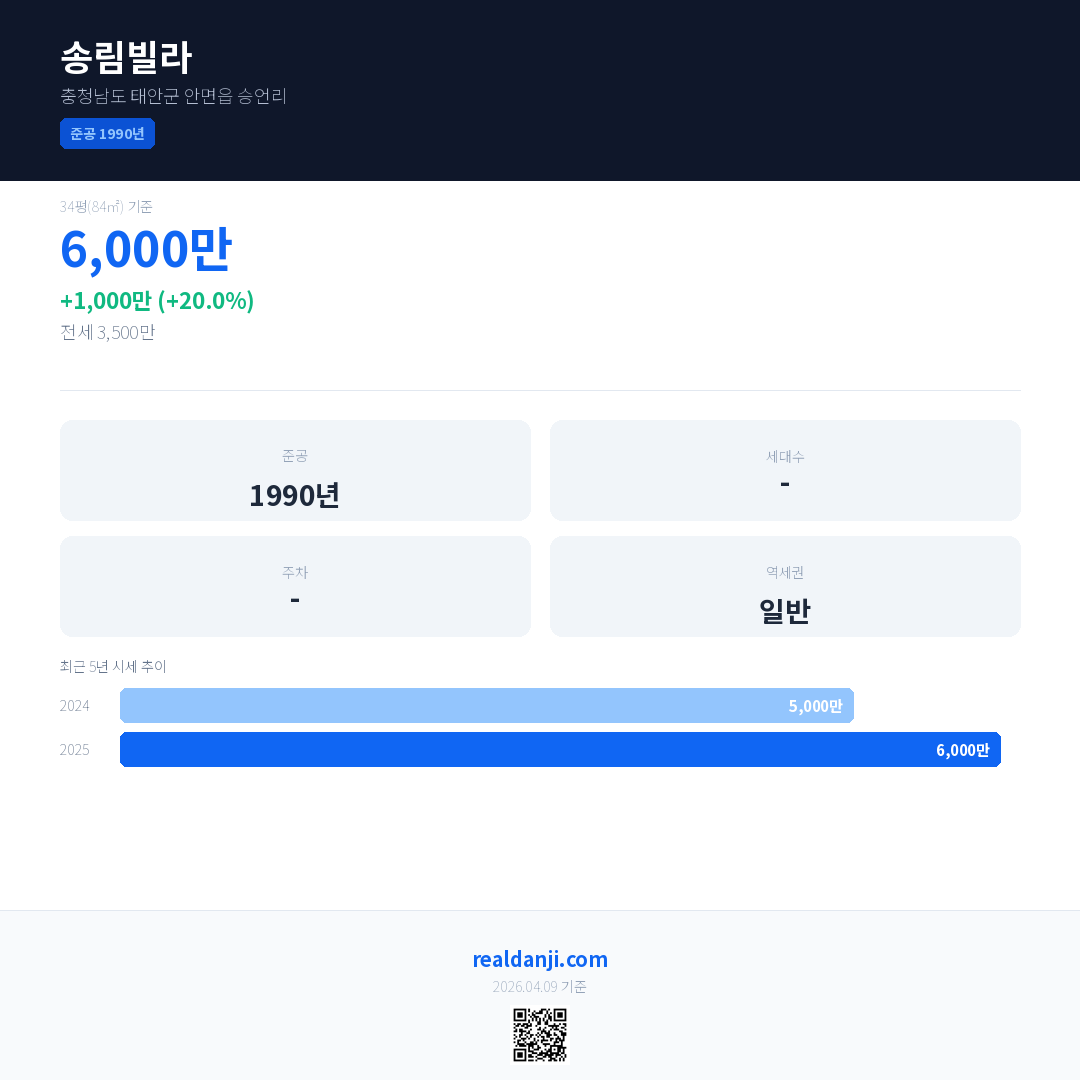 송림빌라 최근 거래가는 6,000만입니다. (2025-01)